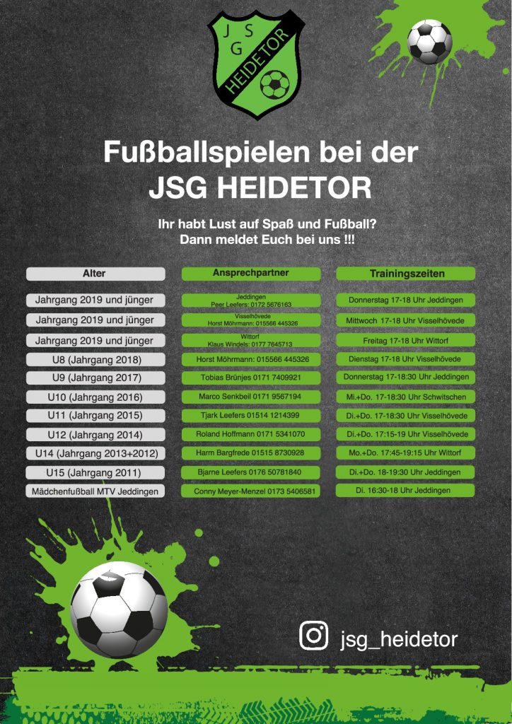 Im Bereich Jugendfußball haben sich die Vereine MTV Jeddingen, SV Schwitschen, VfL Visselhövede und SSV Wittorf zu einer Spielgemeinschaft – der „JSG Heidetor“ – zusammengeschlossen.